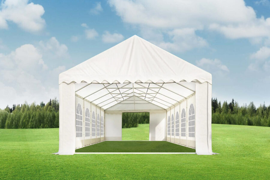 - Wind resistent skirting along the perimeter of the tent, as well as additional base frame anchoring, effectively prevent draughts and unwanted movement of the tarpaulin. Please note that high winds can damage the tarpaulin.