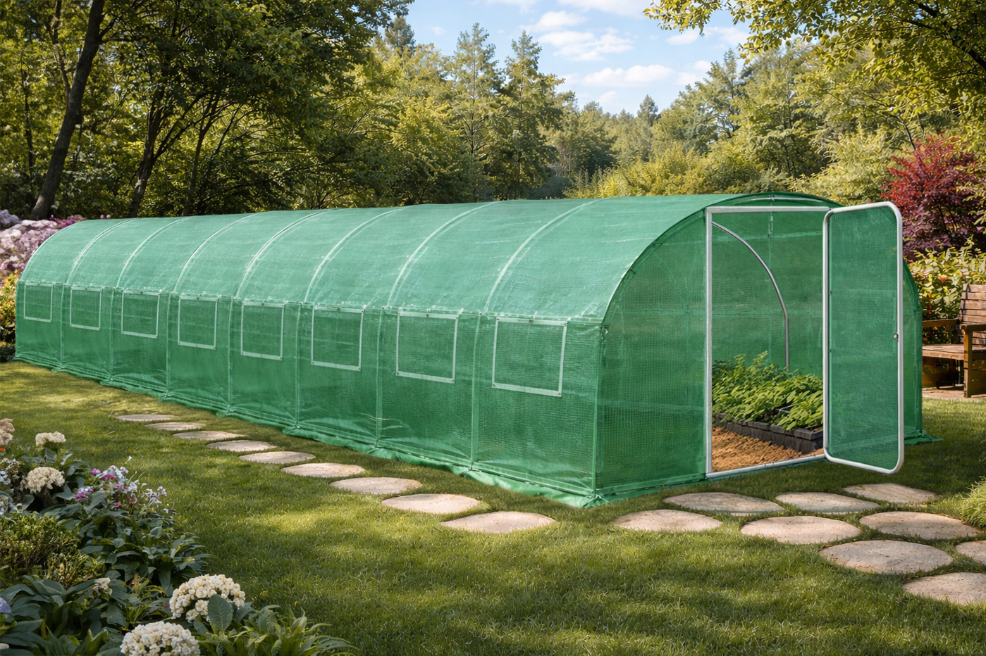 Manufactured with a heavy-duty 200g/m² Green PE cover, it provides excellent light diffusion to promote healthy plant growth while helping to regulate internal temperatures. The premium cover is UV-treated for extended lifespan and improved resistance against weathering.